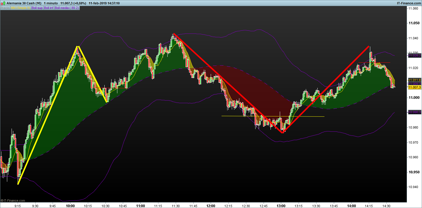 Las bollinger las llevo para que me marquen unas pautas que llevo estudiadas muchos años además de marcar continuamente la volatilidad
