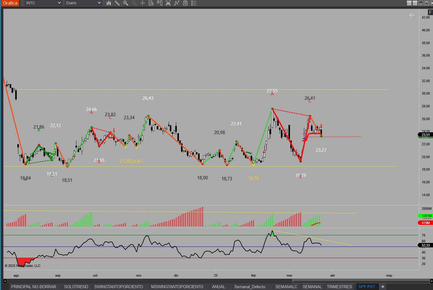 Tiene toda la pinta de cerrar el hueco e ir de nuevo a los 19,29, espero que no más por ahora pinta una ABC bajista, que se cumpla o no, el tiempo dirá.