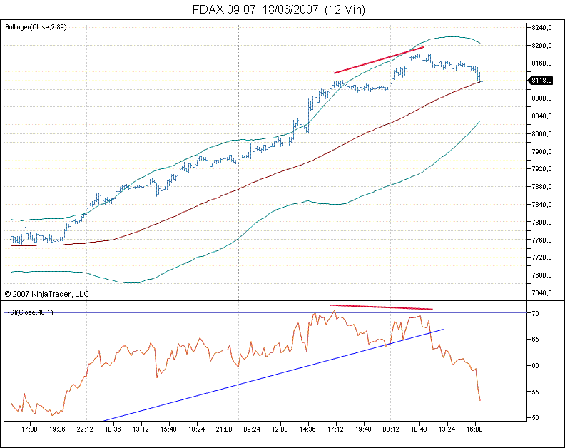 La informacion mas valiosa del RSI es el fallo de oscilacion( divergencia) .