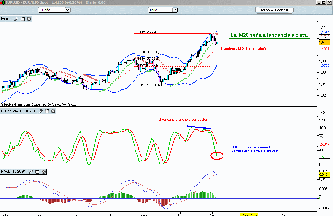 DK , ya sabes que yo no entiendo eso de si cierra aquí o allá, tampoco te estoy diciendo que nos vayamos a maximos ya, no lo sé , pero si sé que el semanal no me cierra con una envolvente bajista y partiendo de ahí... lo demás es pura matemática y lógica y preciosas figuras que me saltan a los ojos antes de que hayan empezado a dibujarse. Cada maestrillo tiene su librillo y yo llevo cuatro años de técnico y chartismo únicamente, alguna práctica ya he de tener, estaríamos buenos si no dominara al menos eso. :?