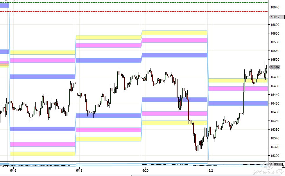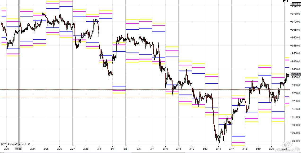 No creo que se den sólo 2 días al mes (10 %) en que las zonas no reviertan, por eso mi comentario anterior. Lo de empezar desde cero me refiero a que nos indiques cuáles son las probabilidades de las zonas, por ejemplo las que yo muestro son z1 aprox 65% de que el minimo/maximo sea ese precio, la z2 representa el 83% y la z3 el 92%. Lo de tradear otros activos no es a lo que me refiero sino cuando el dax pierda su personalidad y tome el control de él el mercado USA fijarnos en que posiciones se encuentran el DJ, SP BUND y cuando digo posiciones es si estan en sus z1,z2, z3, porque es bonito ver cómo por la tarde se puede anticipar ciertas reversiones al tocar SP,DJ simultáneamente sus zonas. Yo veo la Fdax intradiaria como un myt buen soporte para el microtrading siempre en la dirección dela media, pero buscando pocos ptos y muchas operaciones, tal como creo que tu operas actualmente. Saludos