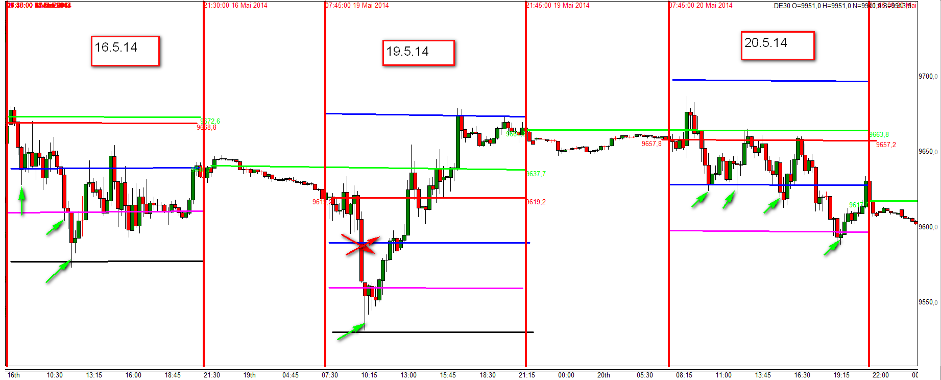 Si veo un retroceso de la velas entro en seguida y contariamente nunca si el precio corta visiblemente la zona como en el caso del 19.5.14.