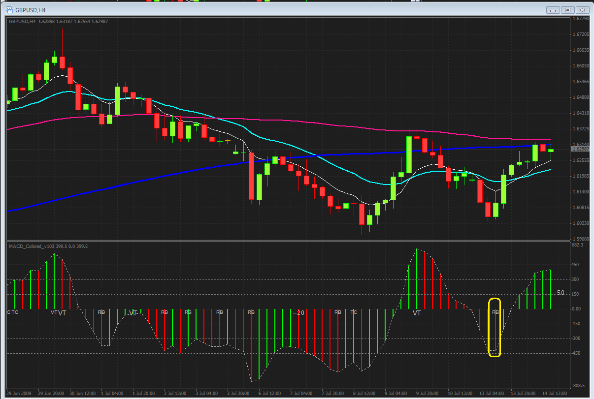 Ejemplo: la barra del MACD esta de color rojo y pasa a verde, desde este punto comienza a contar los PIPS que van en la direccion de color verde (hago una aclaracion: no son los PIps cuando una barra de precio cambia, son los Pips para cuando CAMBIA UNA BARRA DEL MACD)