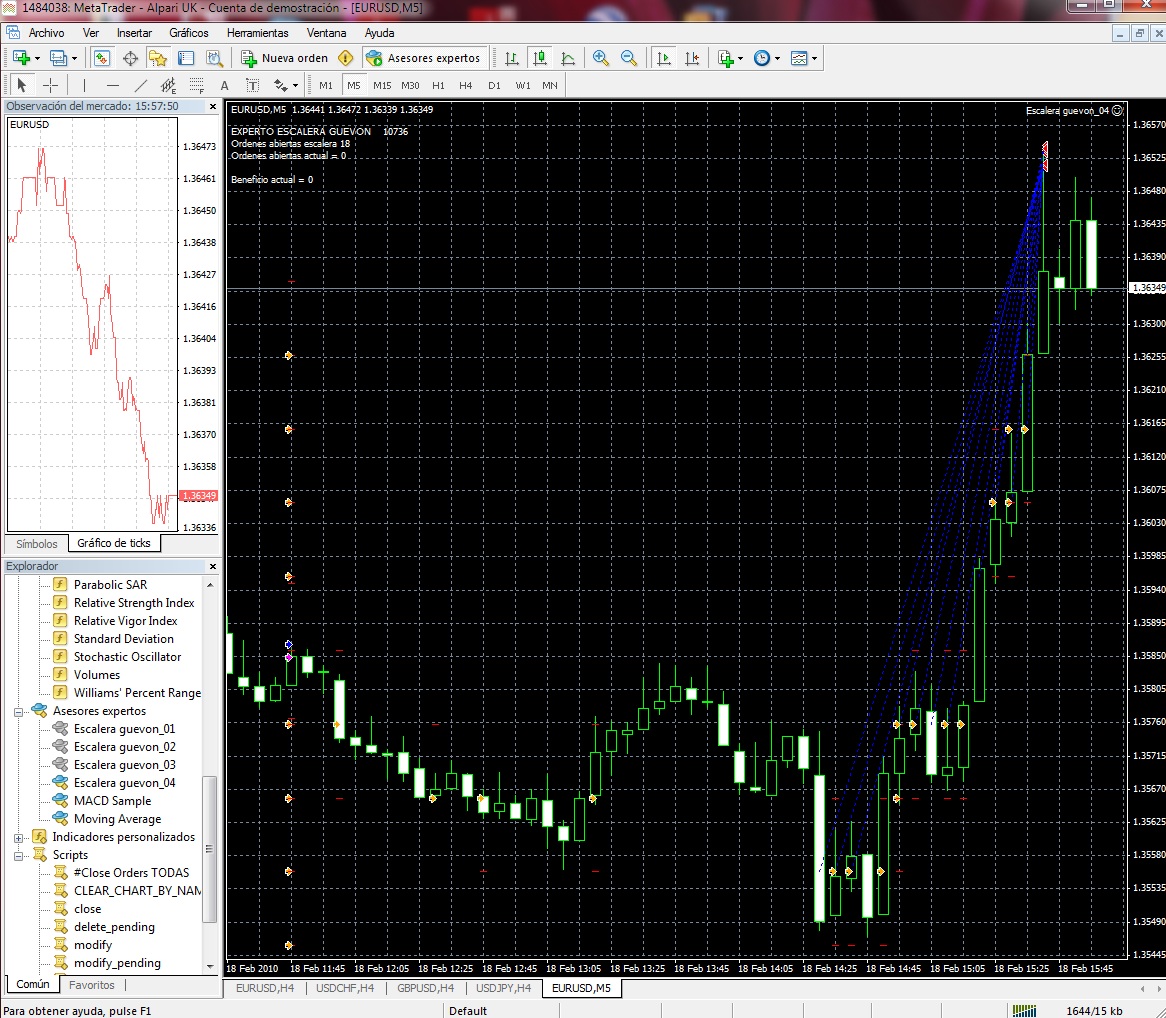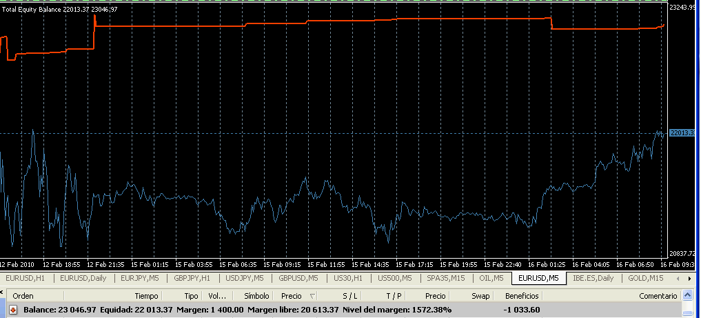 Hoy no duermo siesta..., estoy supercontento, el experto no solo funciona con errores sino que los errores vician la tendencia, osea que voy ganando ahora mismo casi un 10%... el programa se confunde al abrir las ordenes a favor de tendencia y las abre dobles... ahora me pondre en contacto con mi mejor programador (electro) y a ver si lo consolidamos ese error y lo podemos hacer de forma mas correcta...