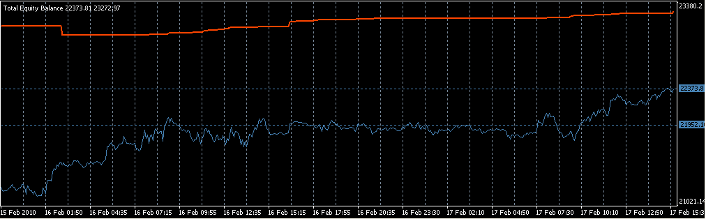 Ha habido más problemas con el broker, pero ya paso de contarlos ya que al final no han afectado a la cuenta ni para bien ni para mal, si que afectan a la equity que resulta que ahora aparece que me tiré un día entero con buenos beneficios por encima del balance y como ya sabes, mi sistema es muy raro que la equity traspase al balance y cuando lo hace lo hace por poco y muy poco tiempo.