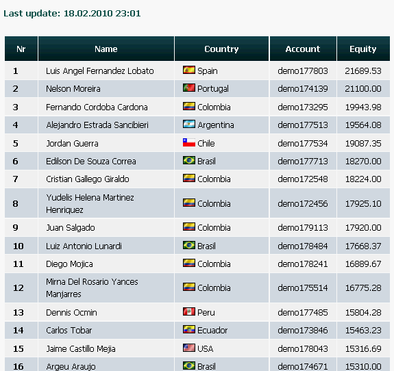 La cara amable la he tenido en el concurso de IFC. Por una hora más o menos he tenido el liderato de la clasificación. Nunca antes había liderado una clasificación de trading. Eso sí este primer puesto a las 36 horas del comienzo tiene mucho menos mérito que el 3º puesto ocupado el año pasado tras 3 semanas de competición. Además el concurso es hispano con lo que faltan muchos rivales fortisimos que había antes,