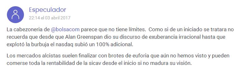Llevo casi el par de años que tiene la SICAV, haciéndole un seguimiento estrecho, y soy accionista desde principios de año.