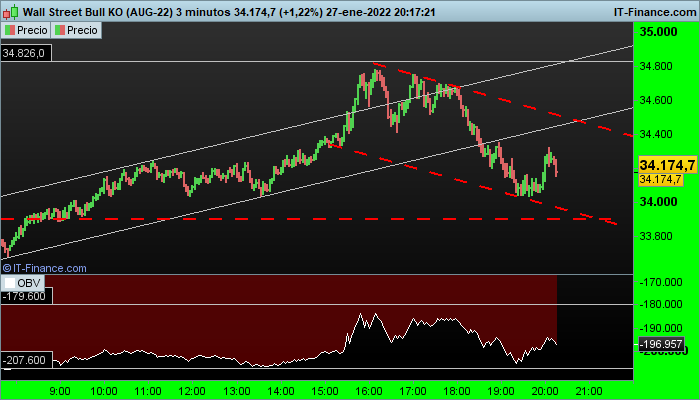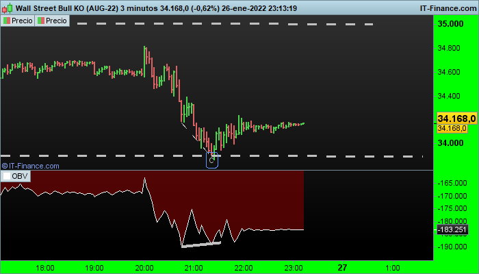 El pajarraco hoy cae con volumen...no hay divergencias en el OBV.