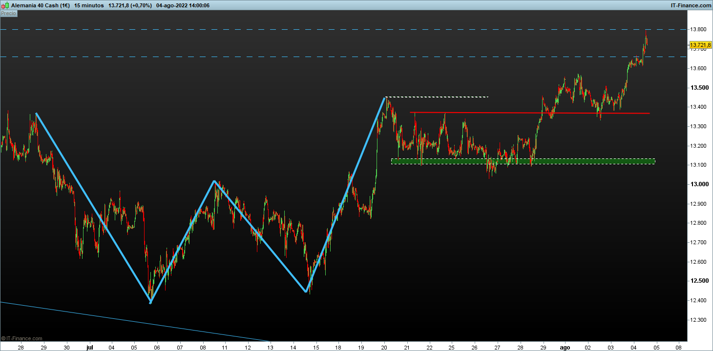 El detalle del martillo invertido con el pico de volumen en 15m en maximos ayer en dax, ya hacia tiempo que no veia una pauta asi