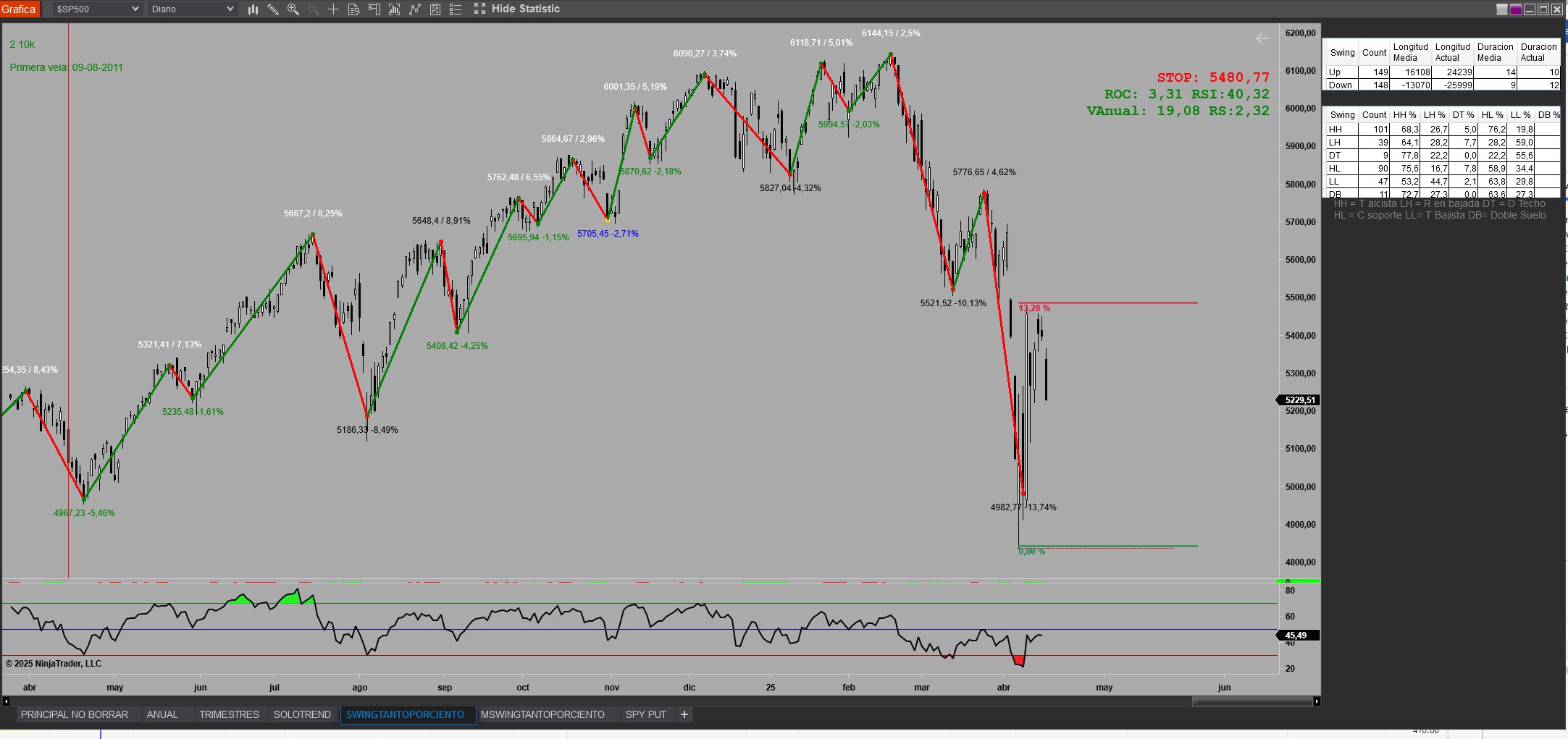 Ahora solo llevamos un 18% de impulso bajista en semanal, si se perfora la directriz pensaría en el 4600 como parada técnica.