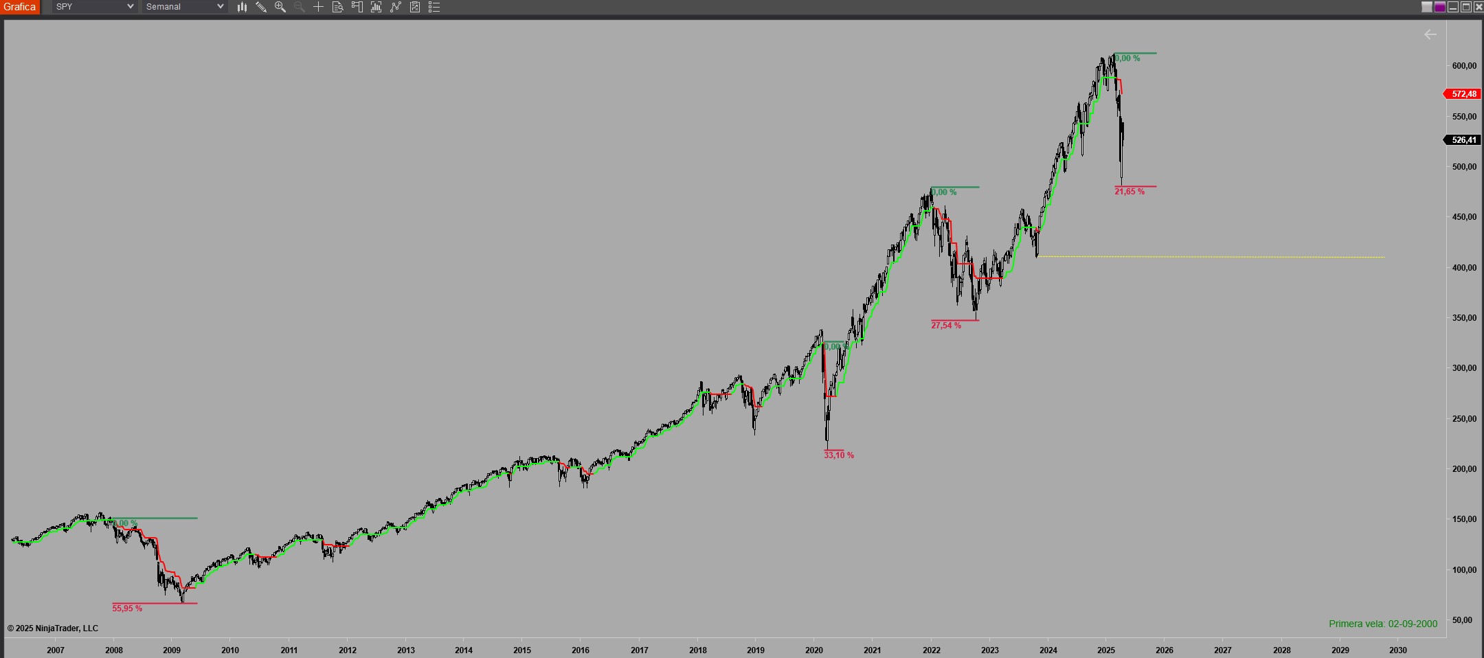 Una vista al gráfico nos dice qué pasó en el pasado. COVID-19 SP 500 impulsó bajista en semanal, pérdida de un 36%, posteriormente, el patrón ABC 28% de caída.