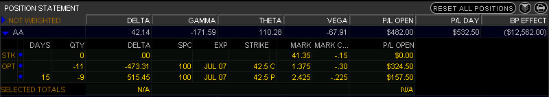 La estrategia de venta de opciones con Alcoa parece que funciona. La volatilidad se ha estabilizado y el paso del tiempo juega a nuestro favor. El resultado refleja que nos movemos a favor de viento.
