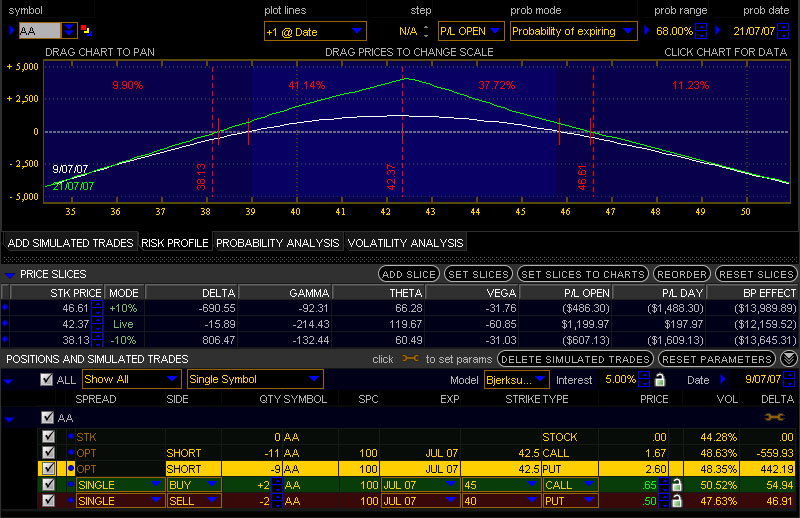 He pensado que a la que esto se mueva un poco podemos vender un vertical para cubrir una de las patas en el sentido del movimiento del precio. Pero repito que se aceptan sugerencias. :-D