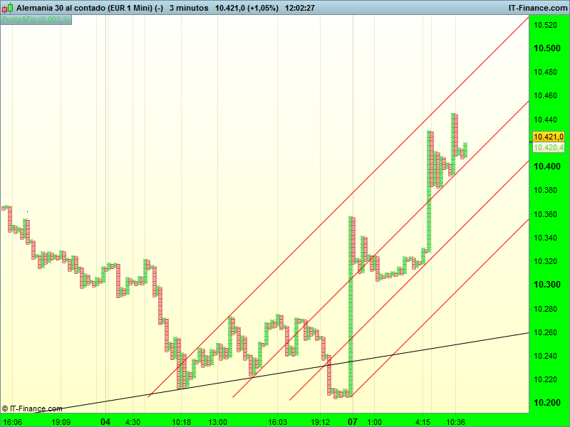Fijaos si soy viejo en el mercado que cuando no había ordenatas...utilizaba graficos de punto y figura para ver por donde iban las acciones....ahora la maquina lo hace tooo...un lujo....por el teletexto o por periódicos los hacia....hay que saber leer la cinta como decía livermore....que se arruino varias veces.