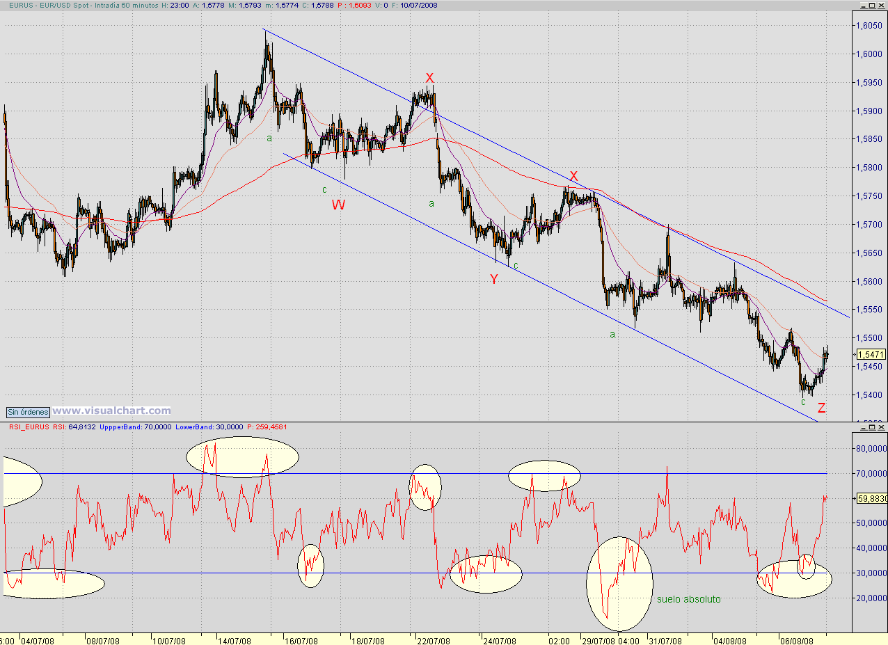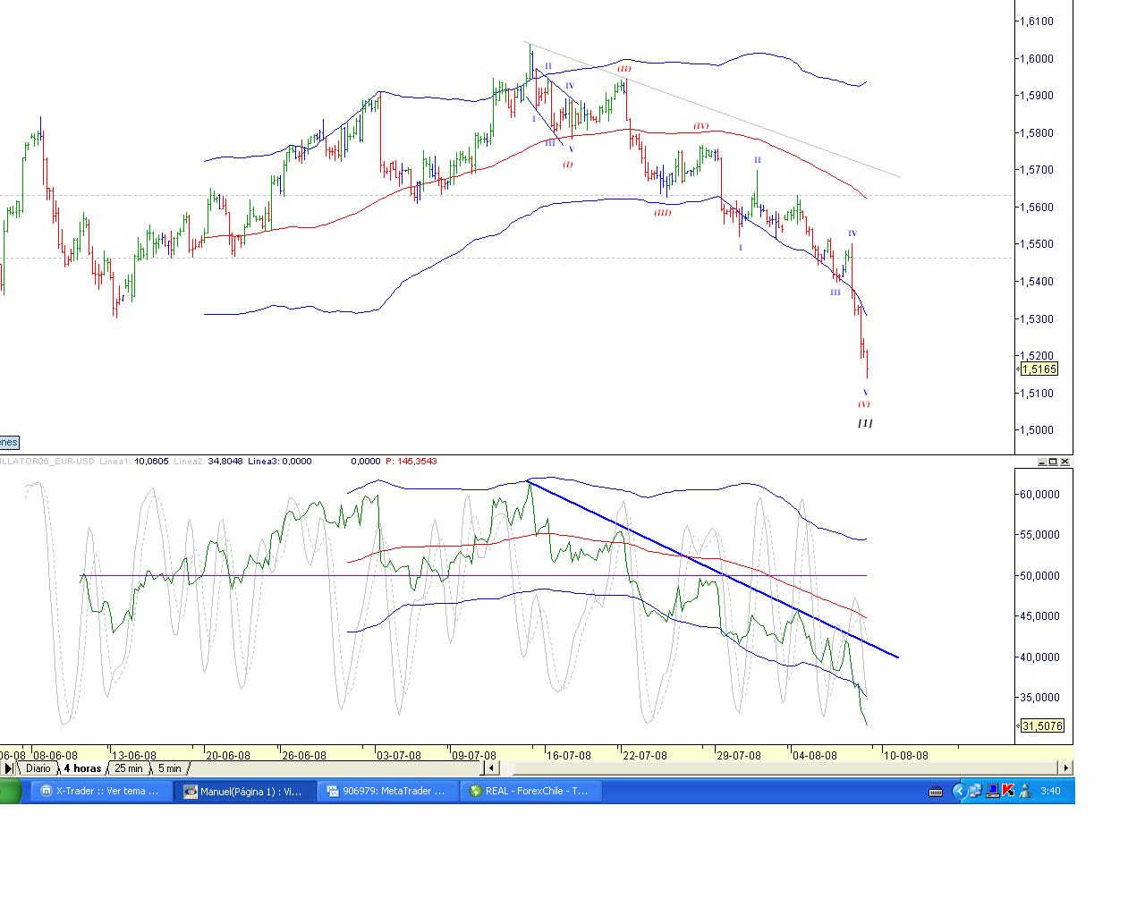 En cuanto a la rentabilidad pues pa qué vamos a mentir de los 2000 euros con los que empecé, después de varias calenturas en las que sacao el dinero de la cuenta principal, luego lo he vuelto a meter, etc, me quedan 800 pero creo que después de todo son pérdidas bien invertidas porque he aprendido muchísimo, infinitamente más que con los 21.000 que perdí en mi anterior etapa como trader (2000-2003). Estoy muy confiado en mis posibilidades y aunque ahora opero con una minicuenta de 100 euros y pico estoy muy contento. Por fin he dado con el sistema pa tener las emociones controladas, trabajar poquito y tener la rentabilidad que busco, o sea ganar pasta y encima tener calidad de vida. El sistema consiste en perder 10 pips, o ganar 20, cada día. Mido la rentabilidad por días acertados o fallados. Sólo llevo dos semanas con este sistema. Esta semana me he sacado un 80% de aciertos (4 de 5 días), la semana pasada un 60%, o sea, que con un apalancamiento de 50 a 1 y reinvirtiendo beneficios pos calcula. Me conformo con un 50% de aciertos/mes o sea acertar 10 de cada 20 días, porque ya sacas un 38% de rentabilidad/mes, un 60% de aciertos (6 de 10) nos da un 67%/mes, un 70% de aciertos nos da un 102%/mes (mi ansiado 200.000% de rentabilidad anual), un 40% de aciertos (4 de 10) da un 13,88%/mes que tampoco está mal si tienes una cuenta abultada, un 33% de aciertos o sea acertar 1 de cada 3 días nos deja en tablas y de ahí para abajo entraríamos en pérdidas. Sinceramente, me extrañaría mucho que este nuevo sistema entrara en pérdidas porque si pierdes un día los 10 pips pues tienes muuuucho tiempo para meditar hasta el día siguiente. Esto es una profesión 100% psicológica.