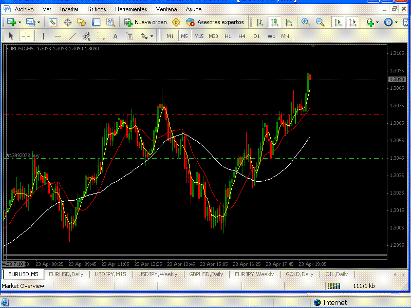 El euro sube, pero en una onda contratendencia que es un koñazo:poco a poco, sin esquemas clarossss...Poco he ganao hoy, vaya , 15 pipos,pero vamos, que en días como hoy pa mí lo importante es no perder. Hoy no jugaba en "mi terreno".