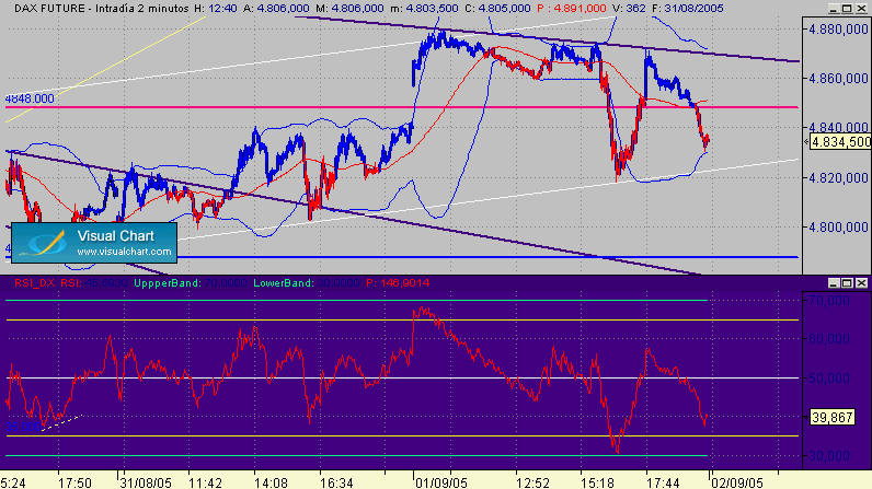 Bueno compis, hay que comenzar esa vuelta de vacaciones, con las pilas bien cargaaas, tantos dias sin hacer nada joer, lo dura que es la realidad ........toca producir . Bueno, estos colegas estan cumpliendo las previsiones demasiado bien, incluso es probable que suban al 4870-80, rompiendo la linea clavicular y posteriormente caerse a plomo y cumplir con la figura. Tomaroslo con calma y no trabajeis mucho que pronto es viernes. saludos y suerte