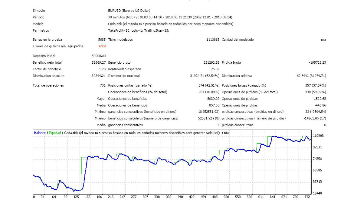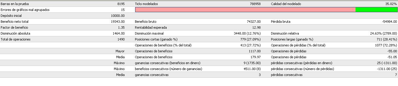 El mismo sistema, optimizado para el spa35 (ibex35) en xtb, da unos resultados mucho mejores que en el eur/usd.