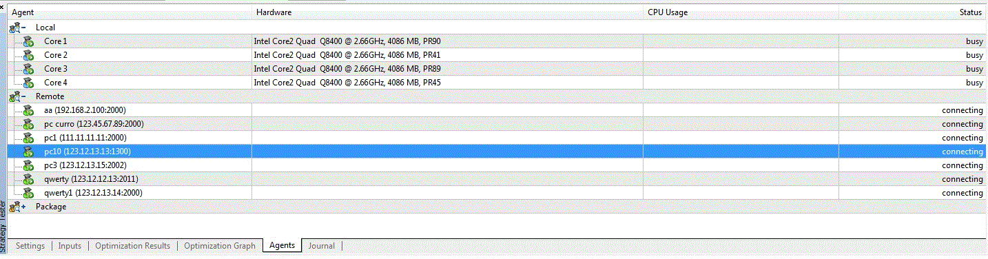 Podemos hacer un club. ¿Quien se apunta?. El funcionamiento es muy sencillo y seguro por lo que he podido ver. Se pone el MetaTester que viene con el Metatrader5, la IP, y la password que nos comunicariamos por email. Los sistemas de cada uno no se almacenan en los ordenadores ajenos. Y el que quiera puede prestar tiempo de ordenador aunque no utilice habitualmente metatrader (ocupa unos 30Mb en disco).