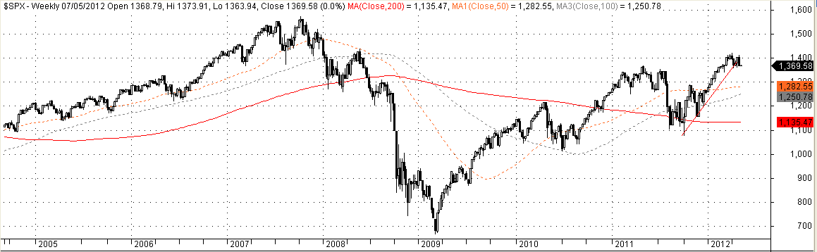 Siguiendo la teoría fractal, y aumentando por un factor de 5 el tamaño de barra, es decir, barras semanales, podemos sacar otro gráfico (al que hay que darle una proporción adecuada, (5 años?, lo cual es subjetivo, pero bueno, nada es perfecto) que, curiosamente, se parece al de días: -