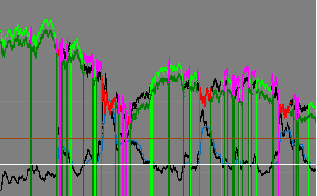 Un ejemplo: Supongamos que el filtro difuso es 0,6. Entonces arriesgamos, de lo que queremos arriesgar globalmente, un 60% en el sistema tendencial y un 40% en el sistema antitendencial. Pero si luego el filtro es 0,2, entonces arriesgar un 20% en el sistema tendencial y un 80% en el sistema antitendencial.