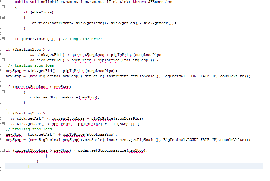 && tick.getBid() > currentStopLoss + pipToPrice(stopLossPips)