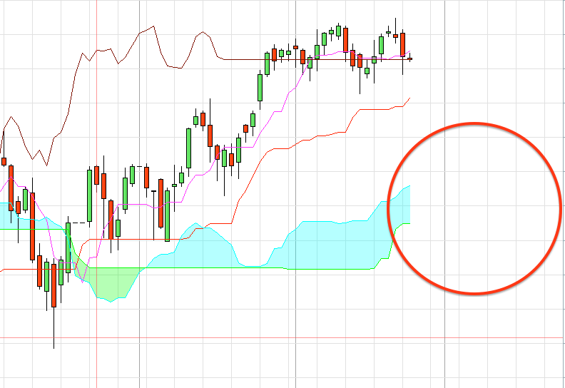 Me gustaría saber si alguien ha podido hacerlo ya que es una de las características principales de este tipo de gráficos. Por alguna razón ProRealtime no proyecta la nube 26 sesiones adelante.