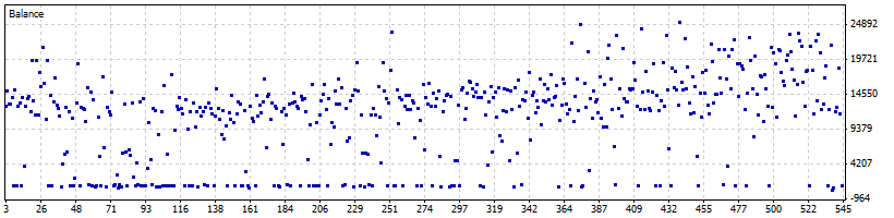 una vez tengas un poco de resultados, incluso no es necesario el 100% de la optimizacion si lo haces por metodo no lineal (visualchart tiene esa opcion, es calculo aleatorio, no lineal en orden.) montas esos parametros al sistema y lo aplicas al grafico sobre el que has optimizado, has de observar si las operaciones las hace naturales, o sea, que no te haga pocas operaciones de mucha ganancia si no muchas operaciones de poca ganacia, aunque si exagerar, este metodo te ira mejor porque en lateral trabajara mejor , aunque en tendencias fuertes te gane menos porque cierre las operaciones antes, pero es lo mas estable, que es lo que uno busca.