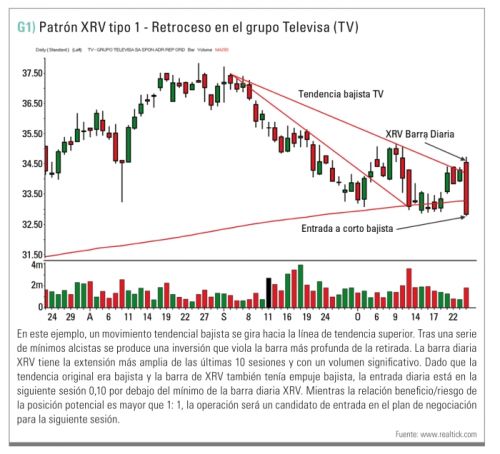 3.- La entrada a corto se produce en la siguiente sesión 0,10 por debajo de la barra de XRV en la dirección de la ruptura.