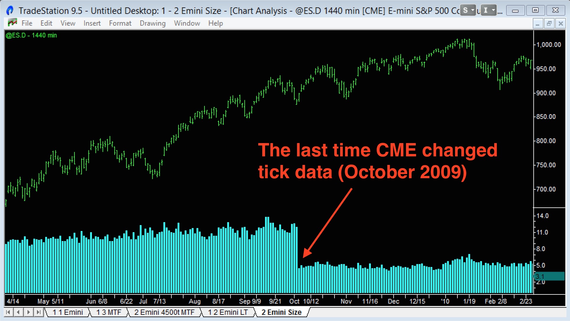 Parece ser que en el 2009 cuándo también se hizo algo parecido, los tick charts bajaron el volumen en una propoción de 11:5.