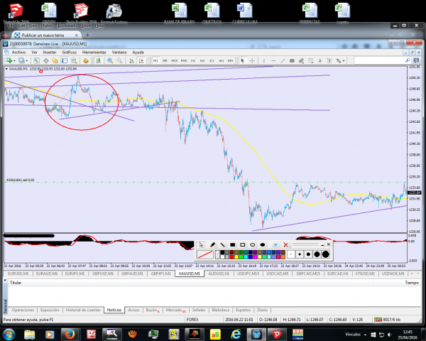 - Y pierdo... como?... Pues la tipica es va 20 o 30 pips y en vez de cerrar e irme a 0 y volver a entrar si hace falta... pues negativo... Otra buena es la de se va un poco no toca Stop, pullbackea casi a a 0 o una cuarta parte del Stop y en vez de cerrar me quedo rezando.... y dale menos 30 o 40 pavos.... y esto sabiendo que un 80% de mis operaciones que van menos de 25 pips mas menos acaban en negativo esos 25 o 30 pips... o mas... No por desconocimiento, sino porque me quedo pillao... esto se debe a.... algunas veces cierro y desde alli hubiera ido 300 pips o mas... otra vez no cierro y doble Stop.... Otras cmo tengo tantos graficos y tampoco dinero ( ya se direis.. baja la palanca... no se puede bajar... mas...) Pongo laguna fotilllo y esto ya es mucho eh...