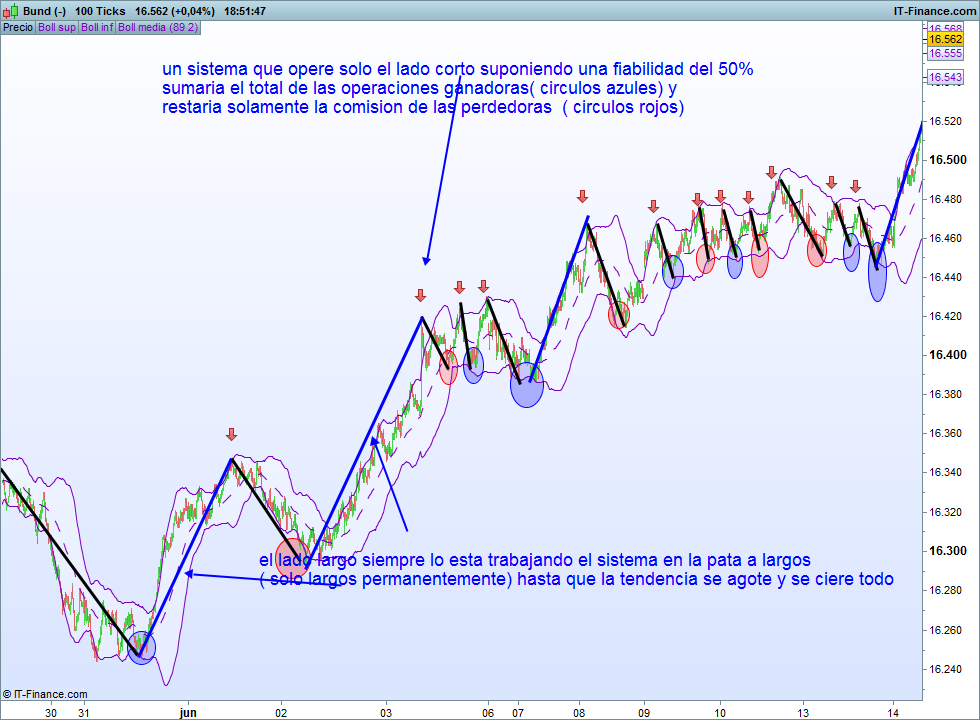 Las líneas azules son movimientos tendenciales a largos trabajando una pata en esa dirección permanentemente