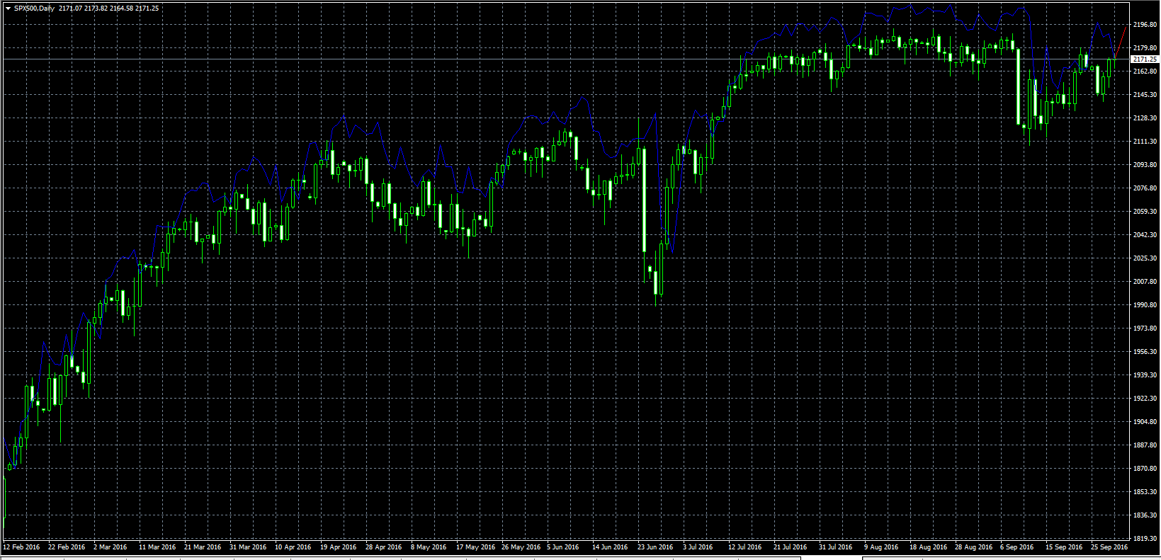 Ya que estamos hablando de sistemas basados en minería de datos, aprovecho para compartir este curioso indicador que representa el ajuste a la serie de precios usando el algoritmo Nearest Neighbour (en azul) y la previsión a corto plazo (en rojo) usando dicho algoritmo.