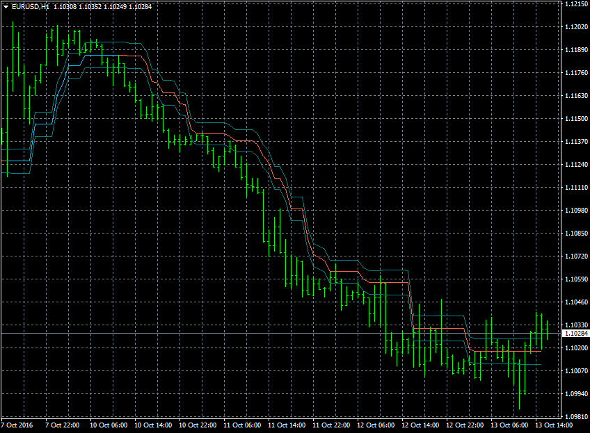 Curioso indicador que combina dos medias simples, una de máximos y una de mínimos, desplazadas (el desplazamiento viene controlado por el parámetro Amplitude) con unas bandas calculada mediante el ATR.
