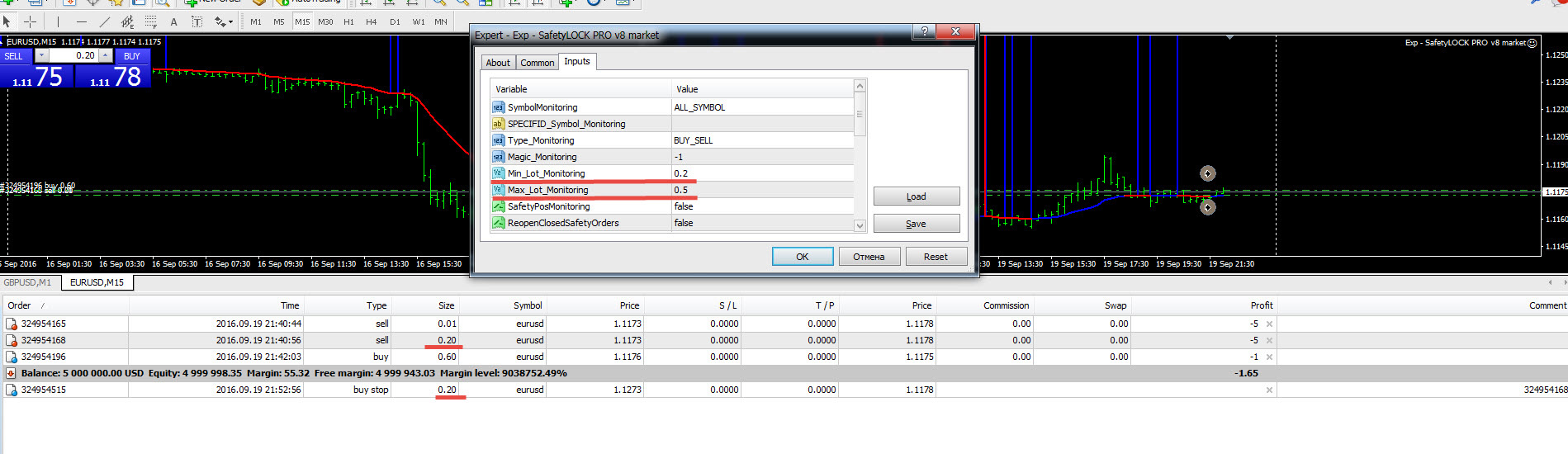 No lleva stop loss porque utilizo otro expert advisor que pone una orden buy o sell stop dependiendo del caso, que cierra la posición abierta caundo se ejecuta la orden buy o sell stop. Entonces vuelve a poner una orden buy o sell stop.Siempre la posición abierta está protegida por una orden stop.