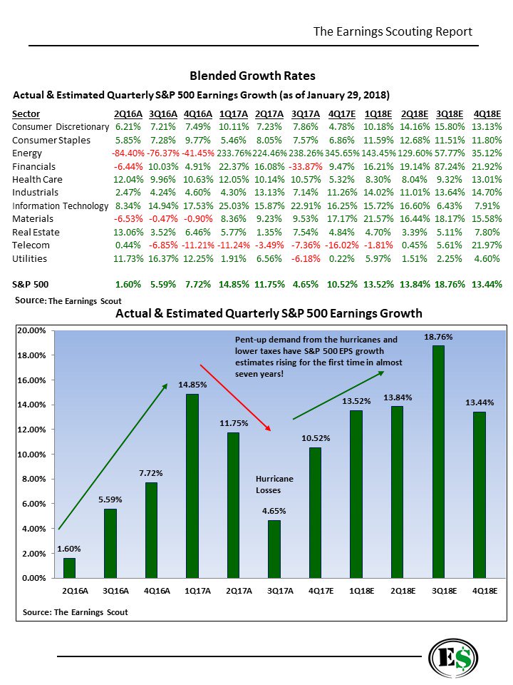 Las estimaciones de este ano es que solo en el 4º Trimestre de 2018 el crescimiento de los Earnings de detenga (o sea caiga relativo al trimestre anterior)