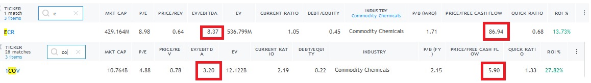 Los fundamentos de ercos estan "buenos" pero covestro tiene el doble de la margen de seguridad o sea me salto la "alarma de oportunidad"