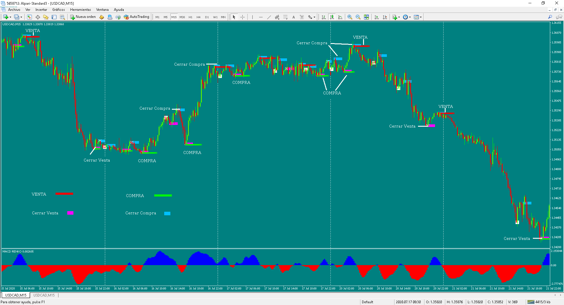 Aunque la imagen que adjunto esta en M15 creo puede funcionar mucho mejor en TimeFrame superiores a M30.