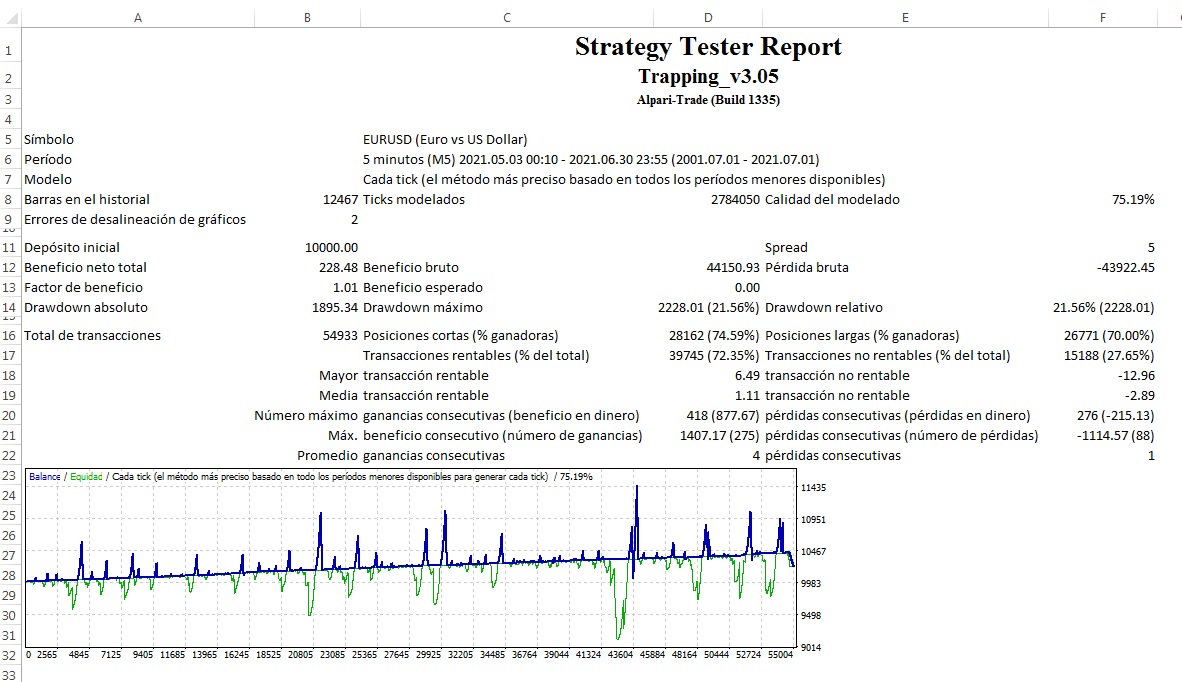 Para el próximo post voy a correr la última versión 10 años en el EURUSD con el mismo depósito, espero que no se me tilde la compu.