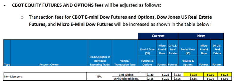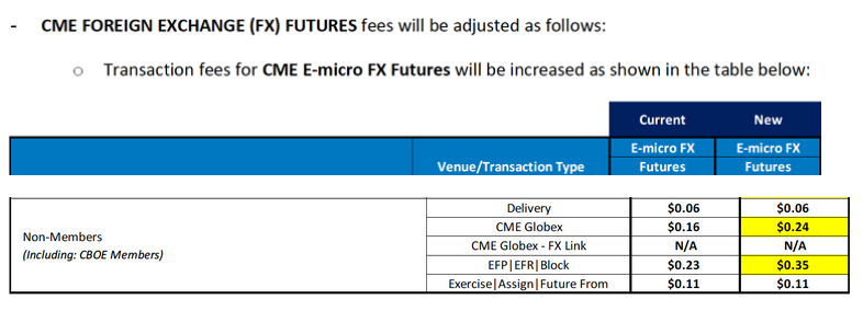 Por si no lo habéis visto, desde hoy día 3 de febrero el CME sube sus comisiones para contratos de futuros sobre índices, micro FX y agrícolas, estos son los nuevos precios: