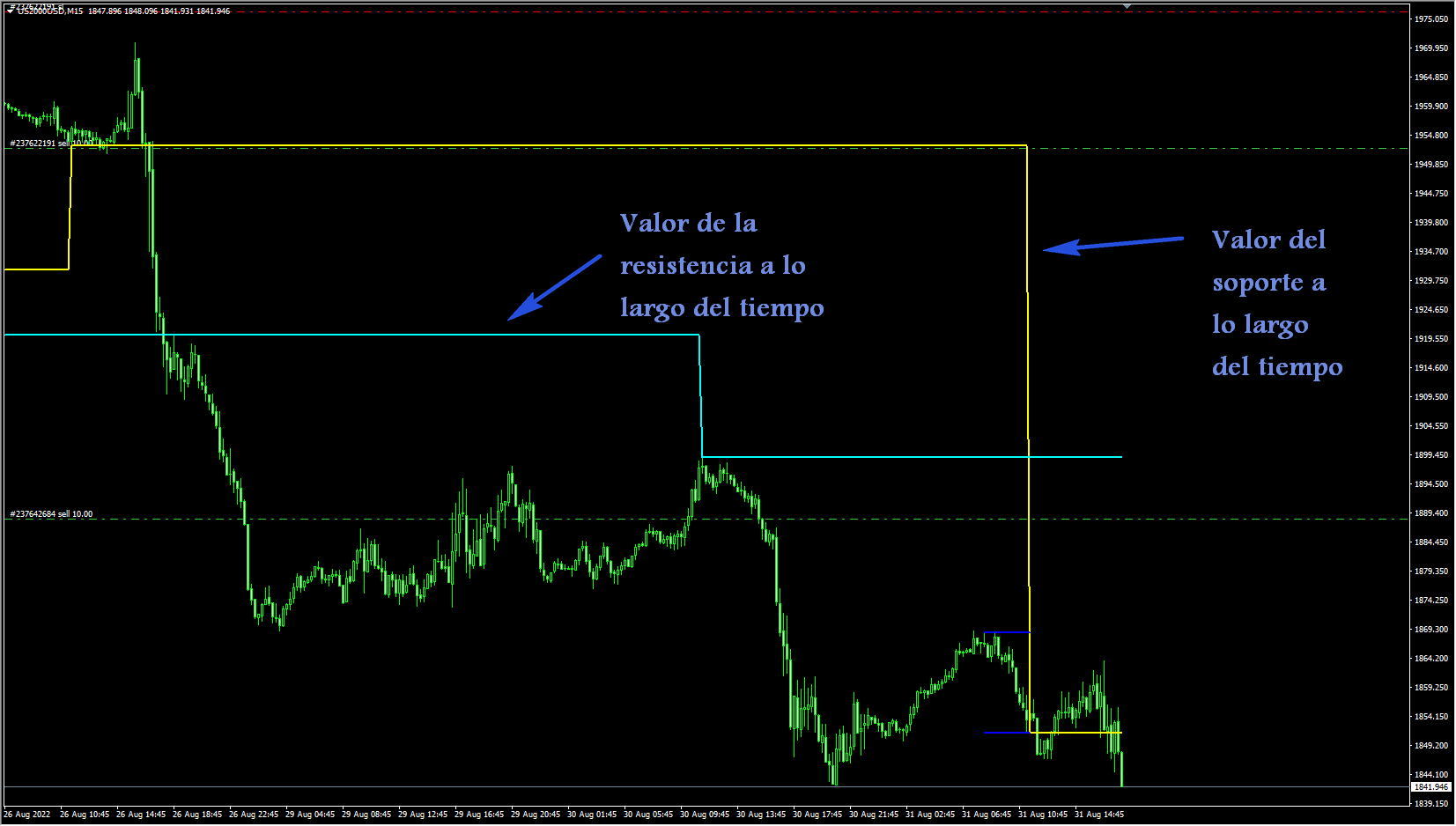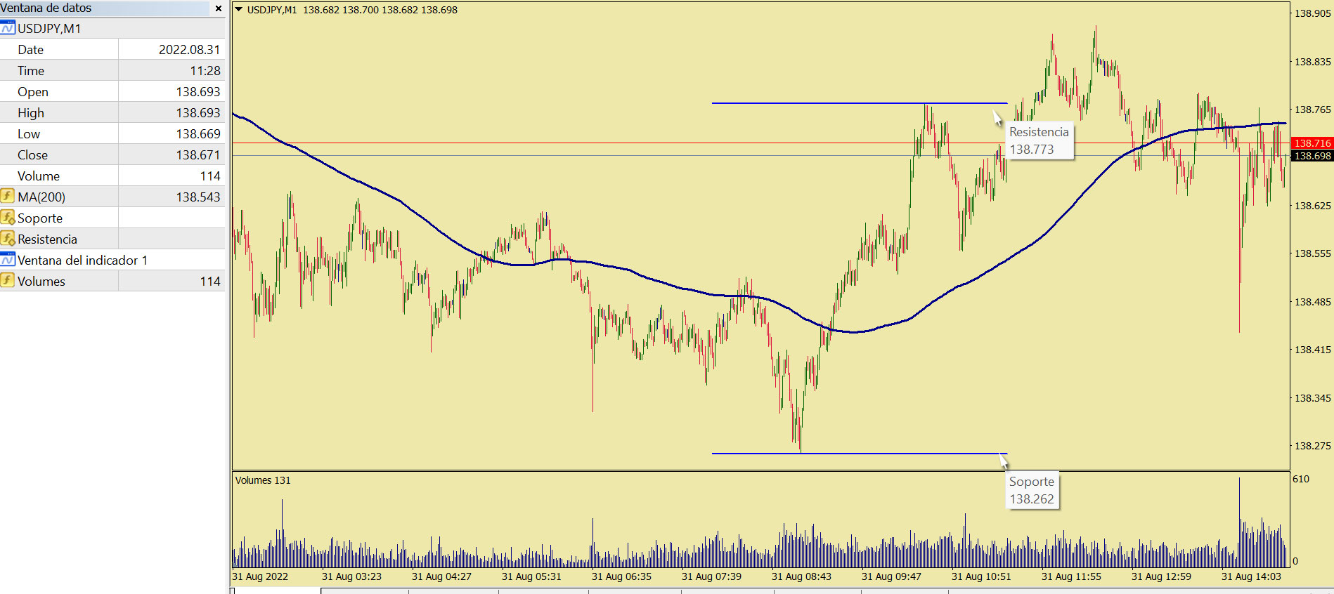 Efectivamente, con esa corrección aparecen los datos en la ventana de datos , pero hay un problema, tanto el soporte como la resistencia de ese periodo de tiempo aparecen en niveles equivocados