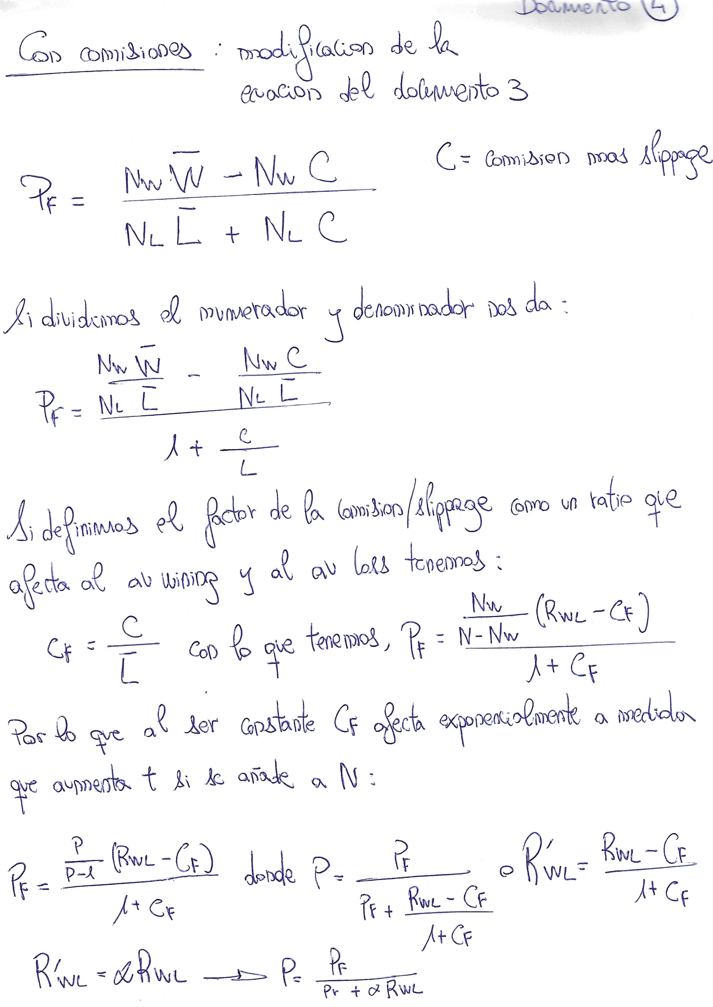 Para ello primero analizamos el efecto de una transaccion sin comision ni deslizamiento que mantien estable el profit factor a lo largo de una sucesion de trades ( documento 3)...........pero cuano le añadimos deslizamiento o slippage a la sucesion de trades NwC en la ecuacion esta arrastra al profit factor en curva ascendente.................(documento 4).............