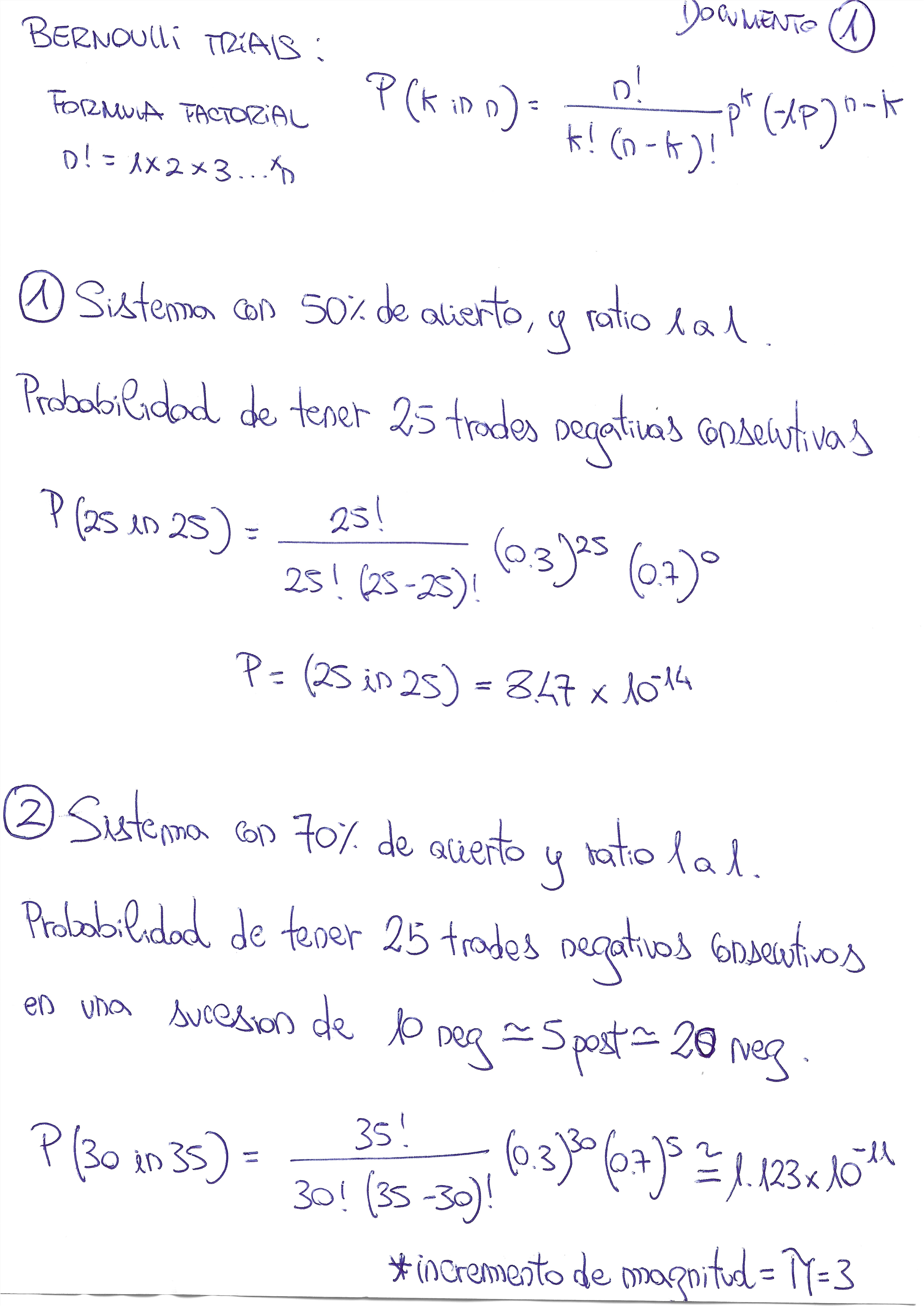 En el documento 1 pongo 2 sistemas para comprobar que realizar 25 operaciones negativas de un total de 25 operaciones es muy improbable.................pero ojo al dato.........si cambiamos la secuencia de operaciones y le añadimos 10 mas aun siendo muy improbable el incremento de magnitud se triplica.....................