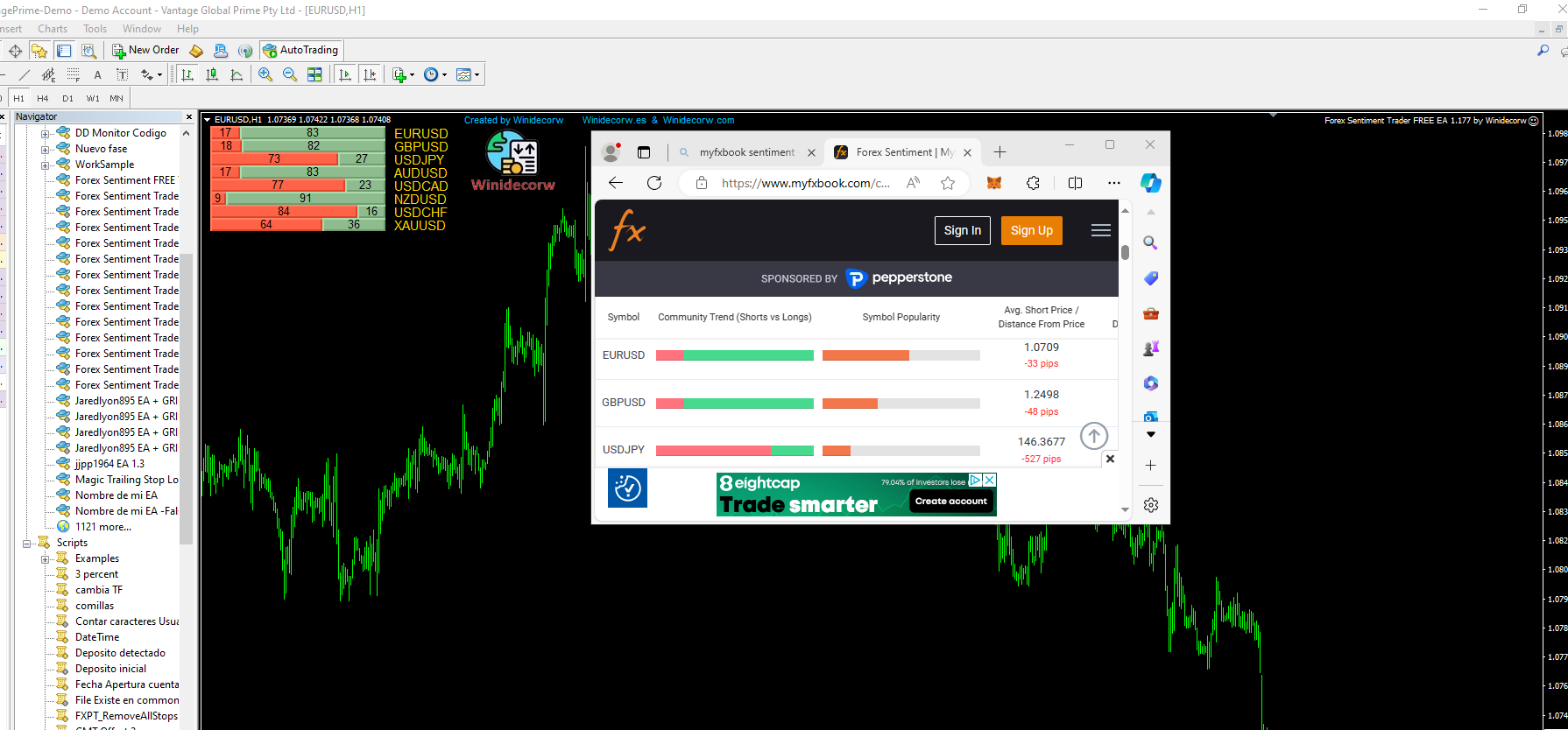 He creado este MT4 EA Gratuito para probar si es mas rentable hacer trading a favor del sentimiento masivo de los traders o es mejor ir en contra. El EA es multidivisa y abre o cierra operaciones basándose en la web de https://www.myfxbook.com/community/outlook
