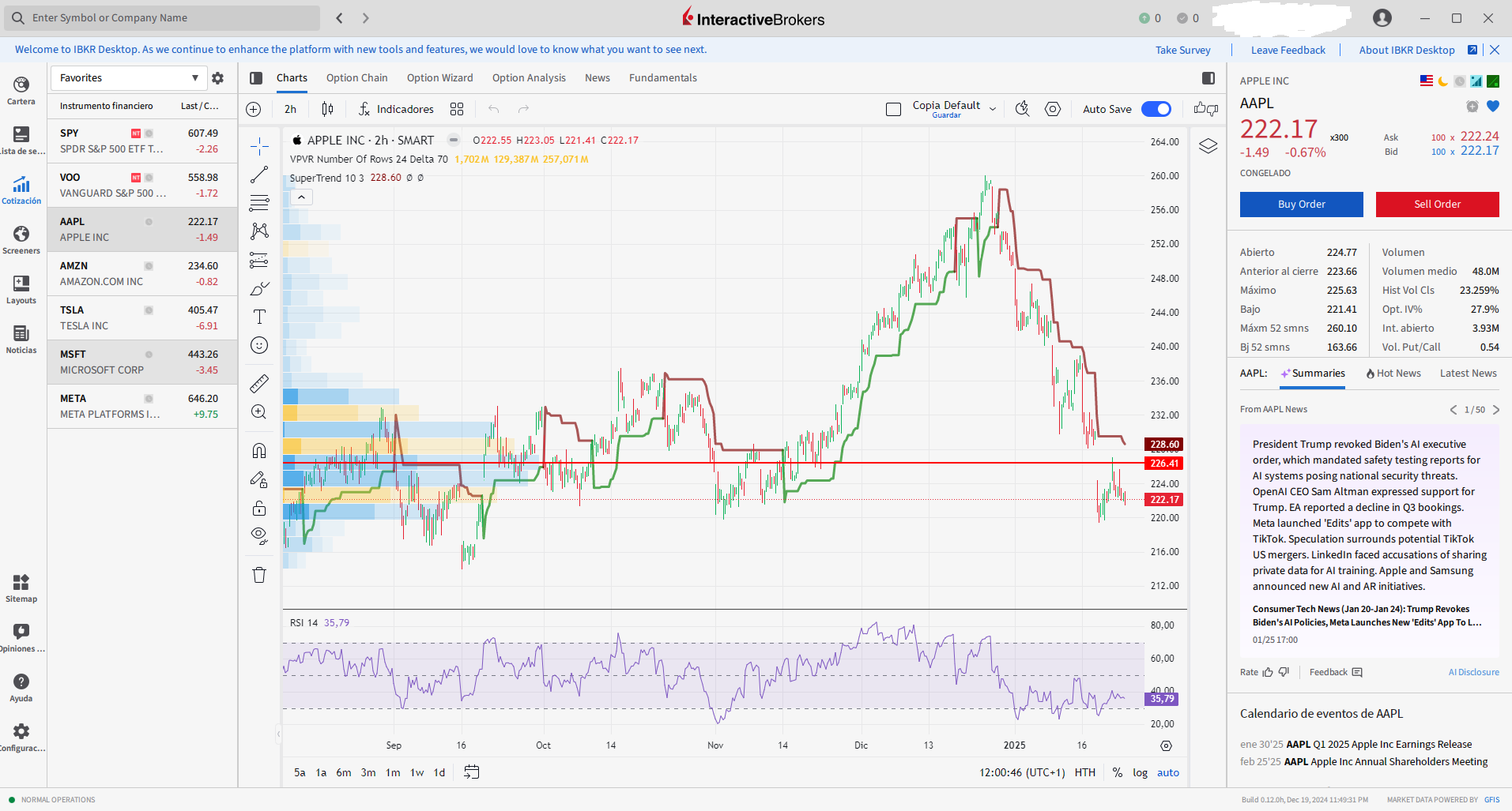 Interactive brokers  lleva un tiempo desarrollando una aplicación de escritorio y actualizando sus versiones con los comentarios de los usuarios. Cada vez que me gusta más, me resulta muy práctico tener toda la información, a mano, cotización, opciones, fundamentales y noticias, como era de esperar en sus próximas actualizaciones, quiere añadir la IA.