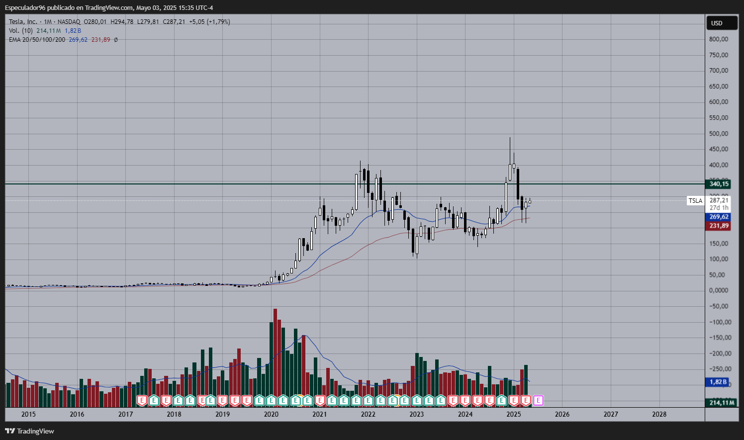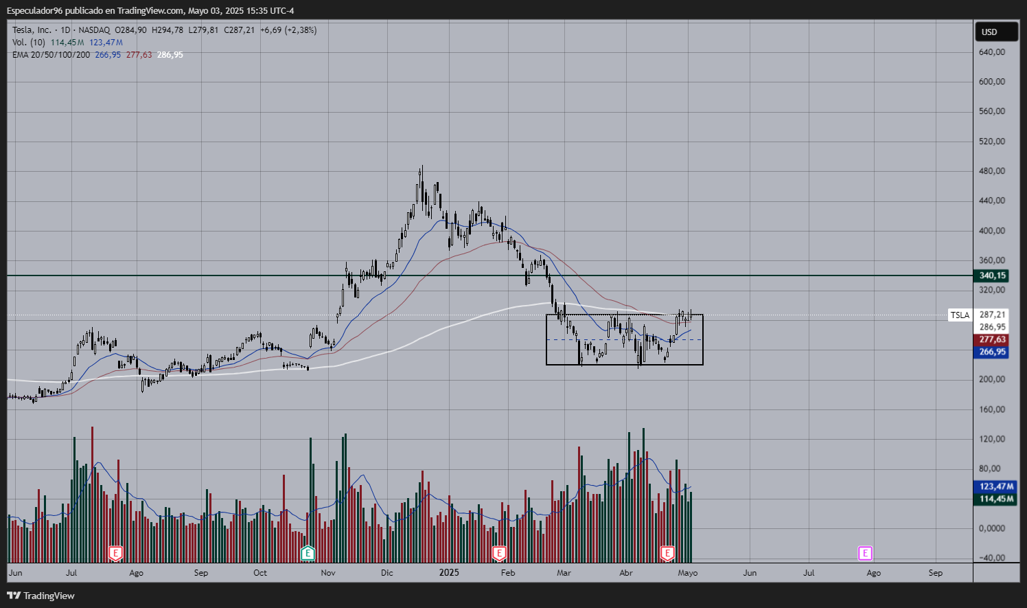 Y este análisis ya cumplióEspeculador96 escribió: 02 May 2025 23:11 Tesla tiene excelentes probabilidades de subir hasta los $340 mínimo (zona donde encontraremos un punto magnético)