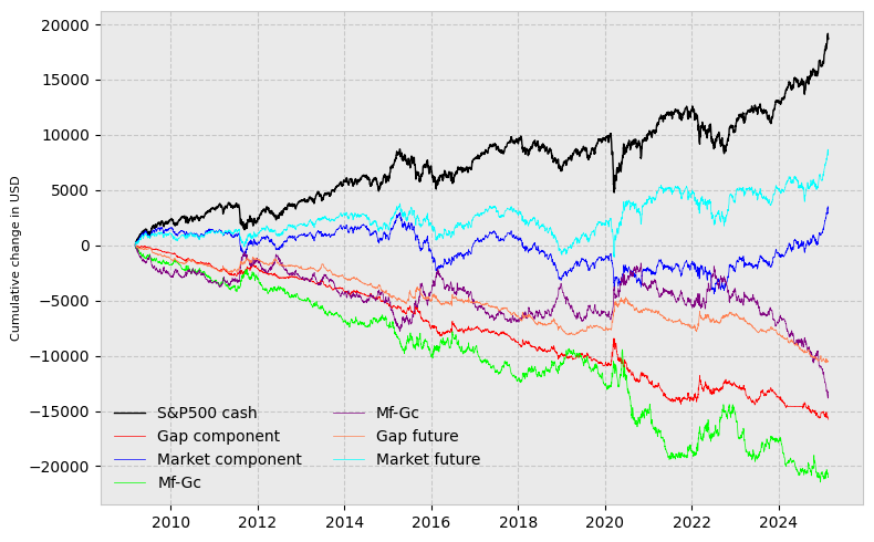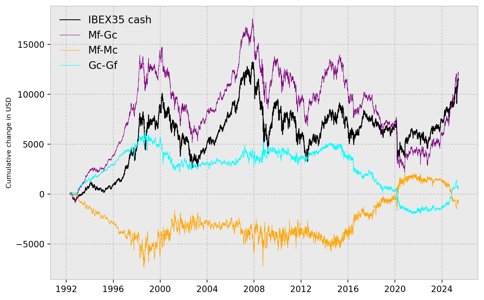 Y esas mismas fórmulas eran las utilizadas con los dividendos en el articulo, "El índice Only Dividend". el carry y el dividend, pero con los componentes gap y market