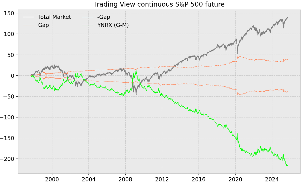 Hará cosa de un año, y escribiendo el artículo de las Bandas GSR para HTM, X me me dijo "¿Iker, estarás usando los futuros continuos no?, sinó tu estudio está usando los gaps entre contratos, y esos no son gaps de apertura"