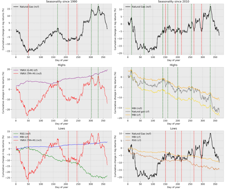 El resultado, una explicación de la estacionalidad, que no detectaba nada empleando en futuro no continuo (ncf), o el futuro continuo (cf), pero que al mezclar ambos, genera una explicación de los giros estaciones desde los años 90 (35 años), y desde el 2010 (15 años), nada desdeñable