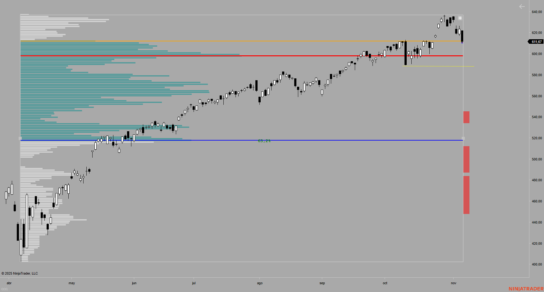 Sube todo, pero no todo de igual forma y magnitud.Gibranes escribió: 13 Oct 2025 18:12 El QQQ presentó un volumen bajista elevado en el techo del canal de su impulso alcista desde abril.